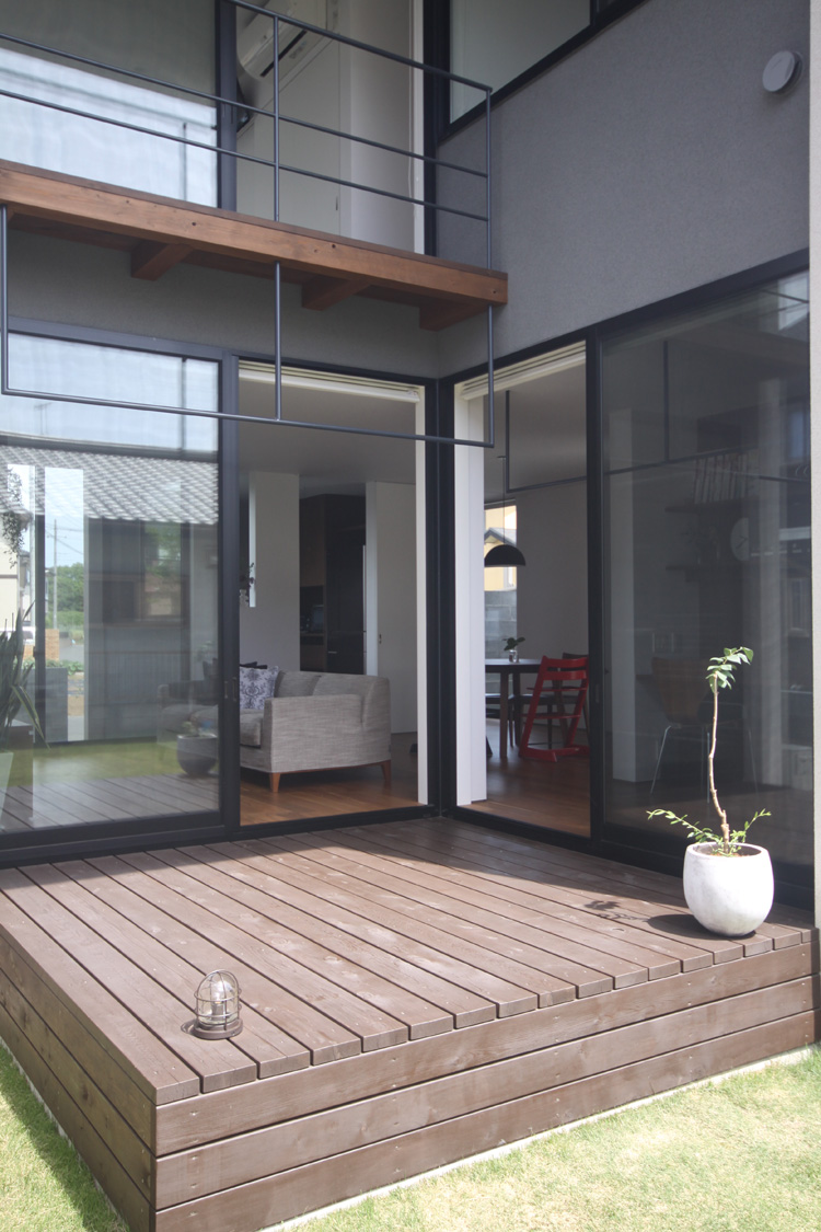 道路や隣地との距離の取り方や庭の配置を検討することで、プライバシーを守りながらも屋外とのつながりを意識出来るような空間を目指した。